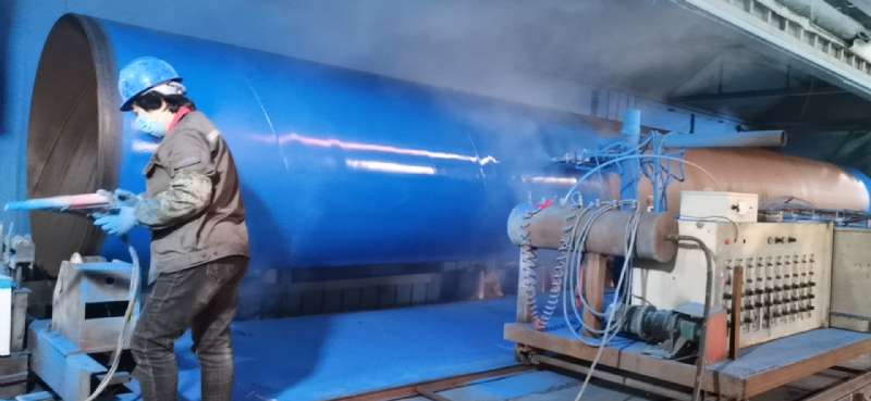 以下是D1420大口徑涂塑鋼管的涂塑加工、施工現場